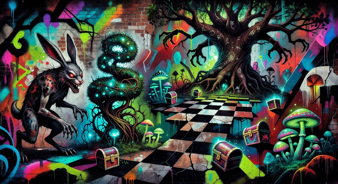 Im Zentrum steht eine Protagonistin namens Alice. In dieser Version wirkt Wonderland wie ein Jenseits mit märchenhafter Fassade. Alice muss dort ihre eigenen Sünden konfrontieren, um am Ende die Königin zu stürzen und ihre Freiheit zurückzugewinnen. Das ist keine komplett neue Interpretation der Vorlage, wirkt hier aber konsequent als Spielstruktur gedacht: Schuld, Läuterung und Machtzuwachs greifen direkt ineinander.