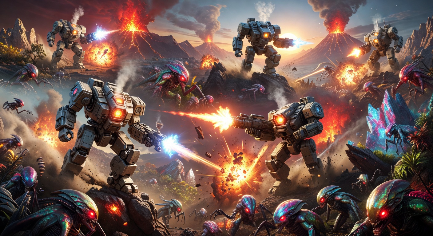 Dazu kommen drei zusätzliche Waffen für Infanterie-Builds. Genannt werden das MGX-42 Bullet Storm als mehrläufiges, verbrauchbares MG, die SMG-203 Gallant mit höherer Durchschlagskraft und die P-33 Missile Pistol. Gerade diese Mischung zeigt, dass Arrowhead nicht nur die Mech-Nische bedient, sondern gleichzeitig Spieler mit klassischem „Boots on the ground“-Fokus abholen will.